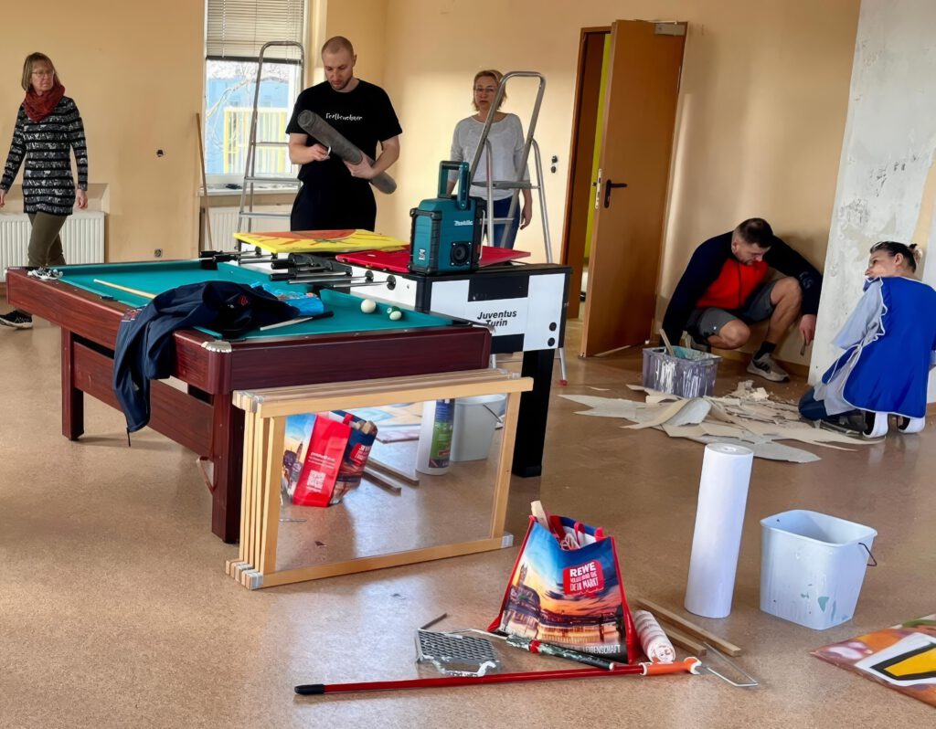 Mit dem Umzug der Hortkinder in das neue Gebäude in unmittelbarer Nähe war die Frage der Nachnutzung des alten Hortes entstanden. Die Gemeinde stimmte einem Nachnutzungskonzept der Stiftung Leben in der Hohe Börde zu. Seit Mitte Februar haben Ehrenamtliche in hunderten von Stunden die Räumlichkeiten renoviert und den neuen Nutzungsanforderungen angepasst.