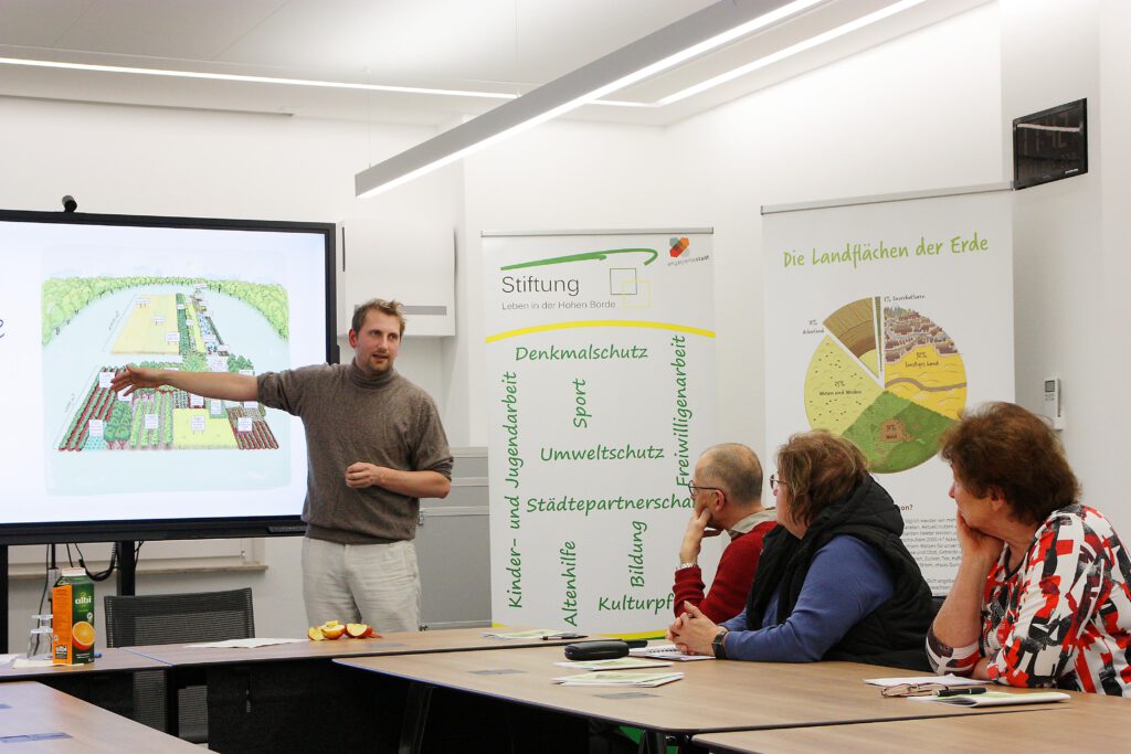 Dem Thema „Weltacker“ widmete sich ein Workshop im Rahmen der vom Freiwilligenbüro „aktive hohe börde“ organisierten Woche des Engagements Mitte November. Ein gutes Dutzend interessierter Bürger folgte der Einladung, um Möglichkeiten eines Weltackers in der Hohen Börde auszuloten. Referent Jasper Jordan von der Stiftung Zukunft Landwirtschaft hat Dutzende solcher Projekte auf der ganzen Welt begleitet.